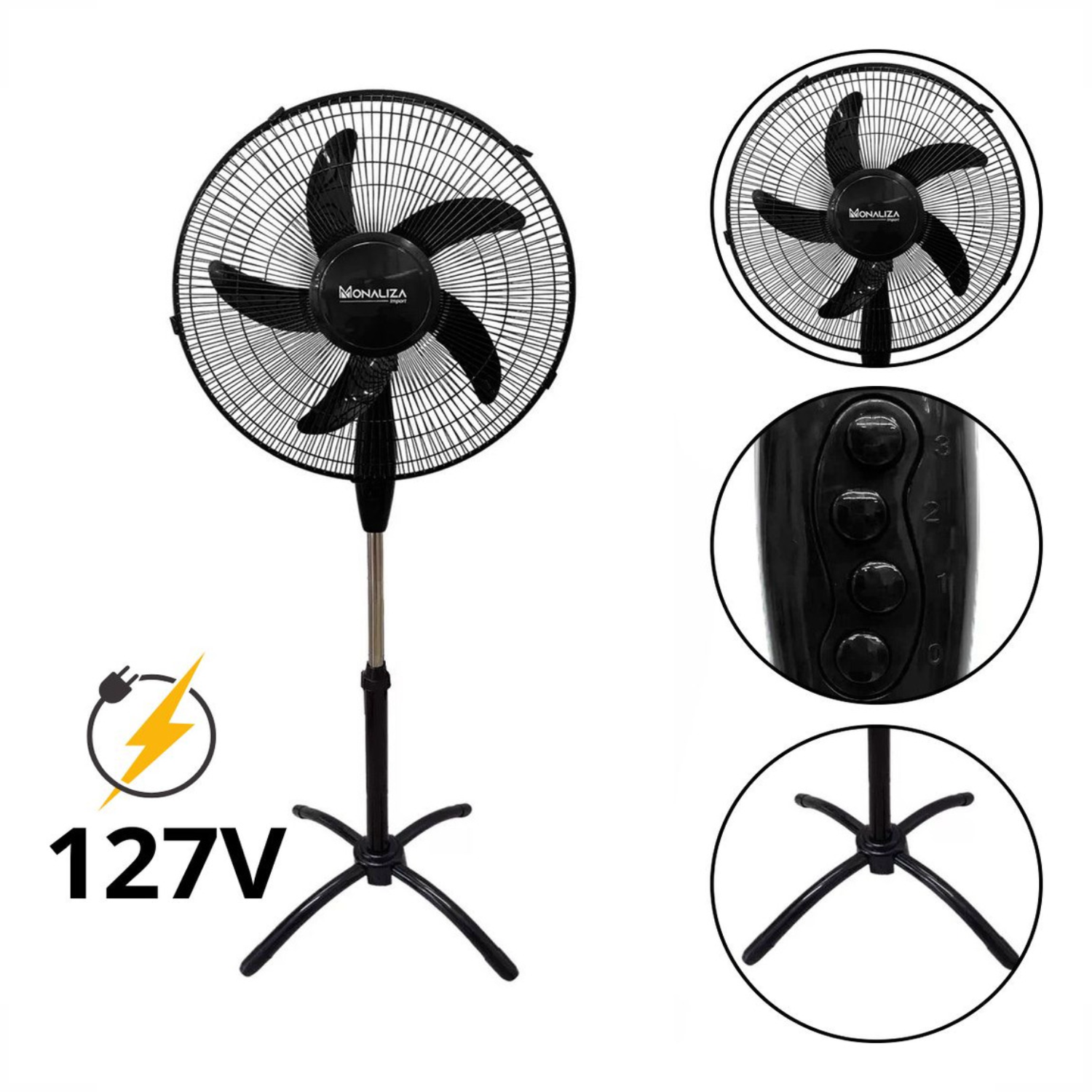 1 Ventilador de Coluna Monaliza - 5 Pás e 3 Velocidades Preto