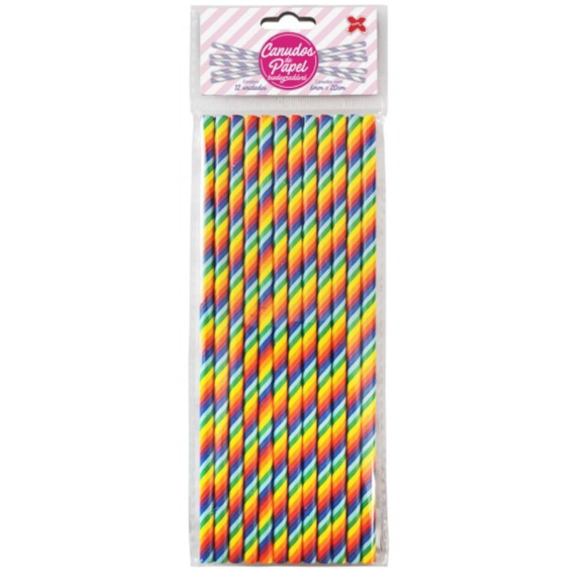 CANUDO DE PAPEL LISTRADO ARCO-ÍRIS 6MMX200MM - 12 UNIDADES - MAKE MAIS - LOJA DO ABENÇOADO