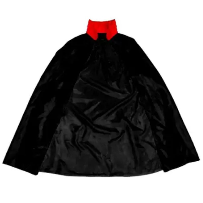 CAPA VAMPIRO HALLOWEEN CETIM PRETA COM GOLA VERMELHA - TAMANHO G - CONTÉM 1 UNIDADE - LOJA DO ABENÇOADO