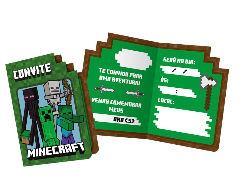 Convite em papel papel cartão com o lindo tema Minecraft.
