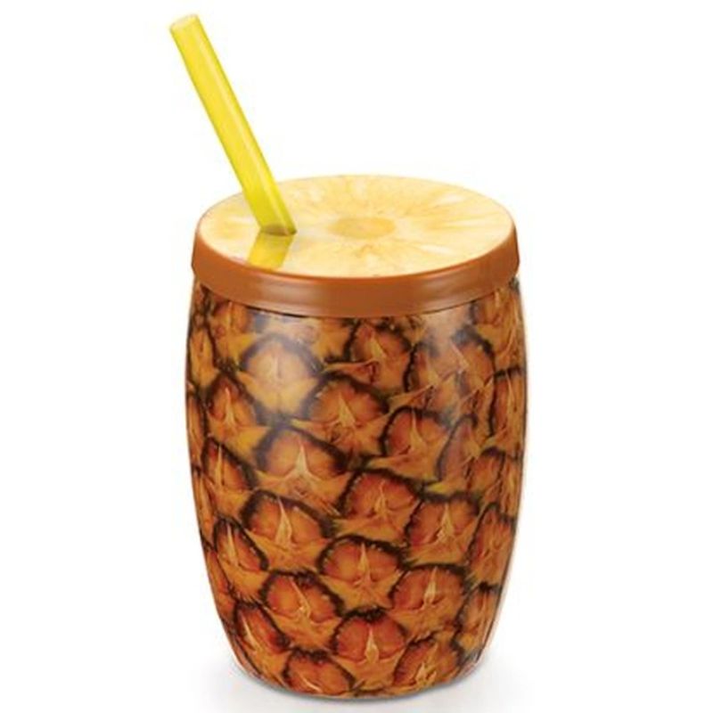 COPO ABACAXI AMARELO DECORADO COM CANUDO 65ML - INJETEMP - LOJA DO ABENÇOADO