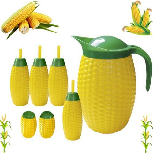 Kit Festa Junina 4 Copos Festa Milho 300ml + 1 Jarra Festa Milho 1,5 L + 1 Saleiro Milho e 1 Paliteiro Milho - Loja do Abençoado