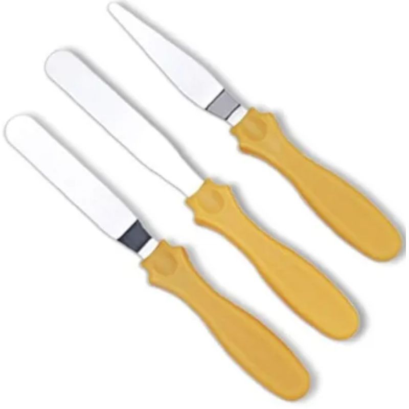 Espátulas Bolo Confeiteiro 3 peças, ideal para decoração de bolos, cremes, glacês, pastas, uniformizar recheios, cobrir de forma lisa ou rústica,