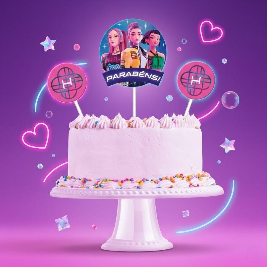 Com ilustrações marcantes inspiradas nas Guerreiras do K-pop, o kit transforma qualquer bolo em um verdadeiro destaque da mesa principal. Suas peças apresentam poses dinâmicas, cores intensas e elementos estéticos típicos do estilo K-pop, deixando o cenário ainda mais fotogênico e estiloso. As dimensões 9,5x18,5cm oferecem equilíbrio perfeito entre presença visual e delicadeza, tornando o kit uma escolha versátil e indispensável para quem deseja uma decoração moderna e cheia de atitude.