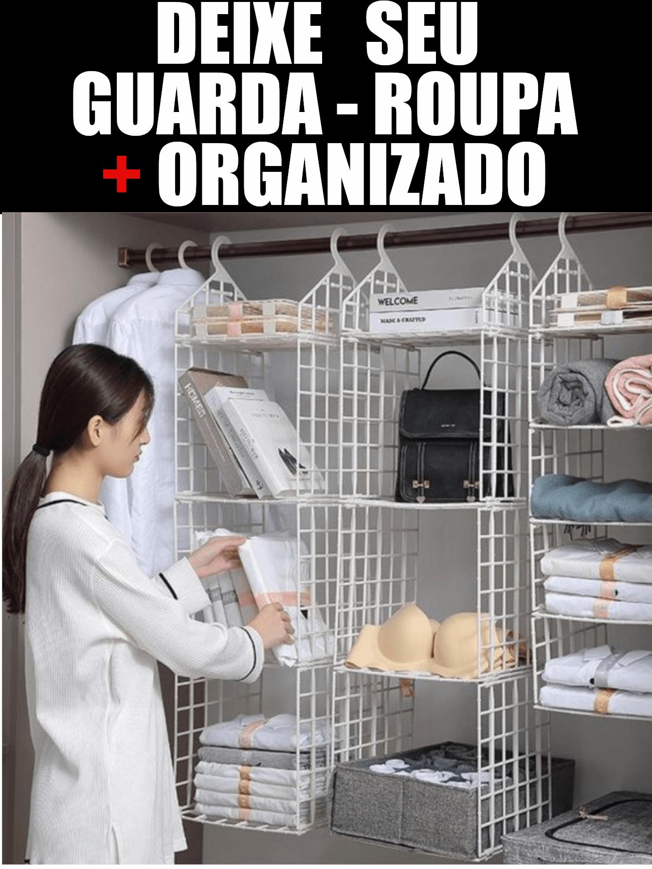 Organizador suspenso são ideais para ganhar mais espaço no seu guarda roupas, com 5 divisorias tem bastante espaço para manter ainda mais arrumado seus acessórios. Por ser modular trás a possibilidade de montar do jeito que mais se adapta ao seus estilo e necessidade. Feito de plástico. Caractéristica Organizador Suspenso Montado: A: 85,5 L: 29,5 C: 29,5