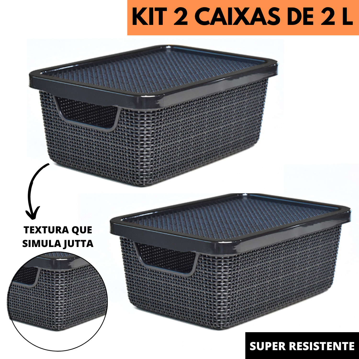 2 CAIXAS ORGANIZADORAS 2L JUTTA PRETO C/ TAMPA MULTIUSO PEQUENO