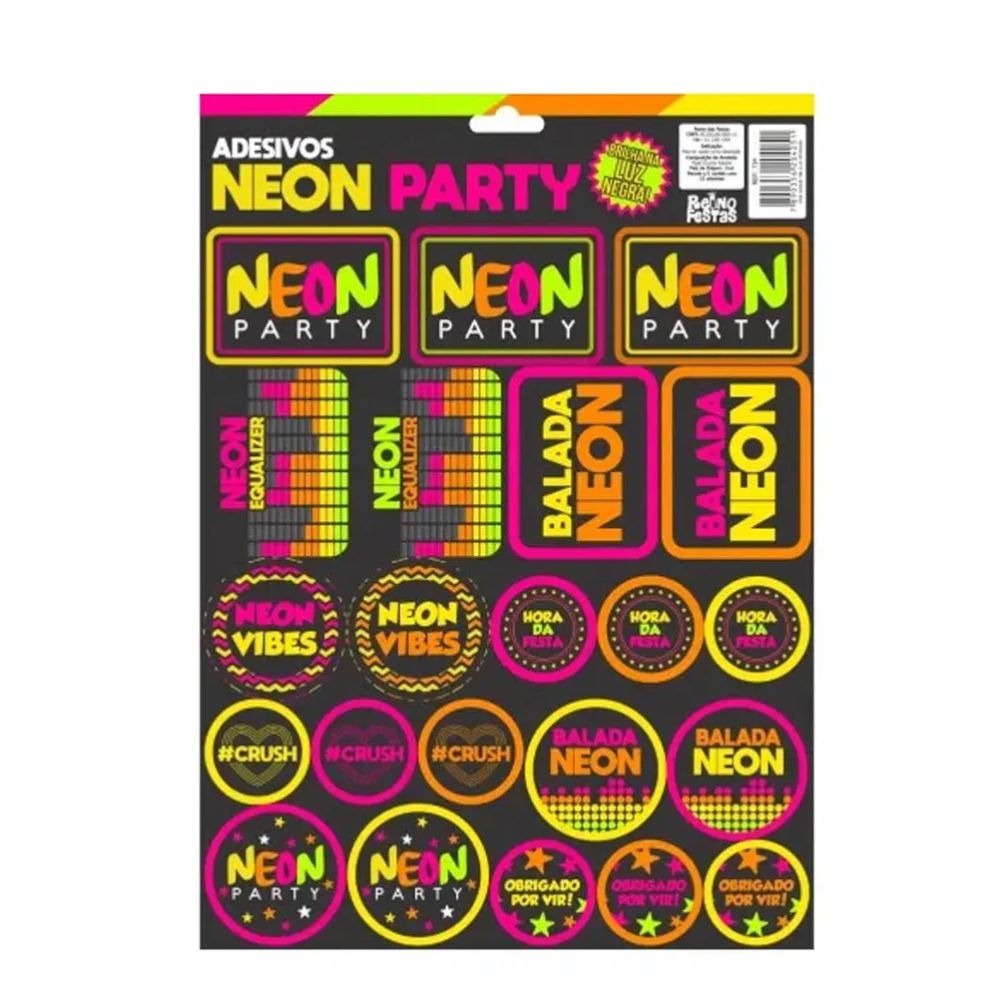 ADESIVO DECORATIVO FESTA NEON BRILHA COM LUZ NEGRA - 22 ADESIVOS - REINO DAS FESTAS - LOJA DO ABENÇOADO
