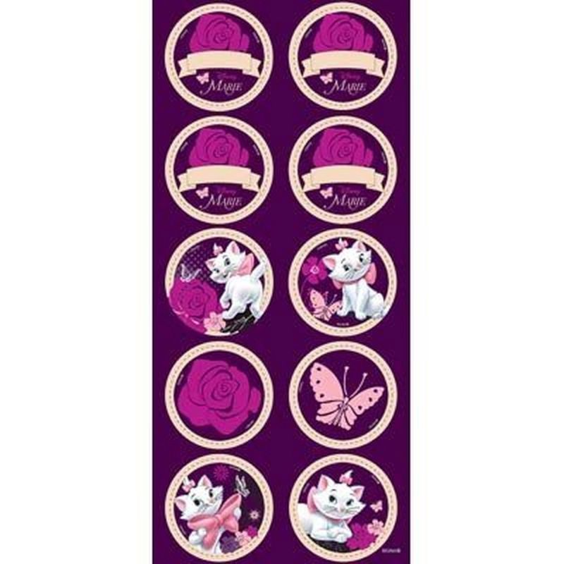 Adesivos auto colantes com todos os personagens em cores vivas do divertido tema Marie.