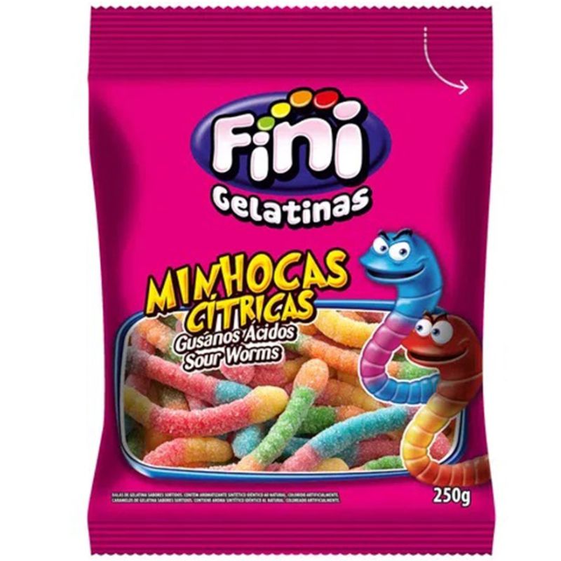 BALA DE GELATINA FINI MINHOCAS CÍTRICAS 250G - FINI - LOJA DO ABENÇOADO