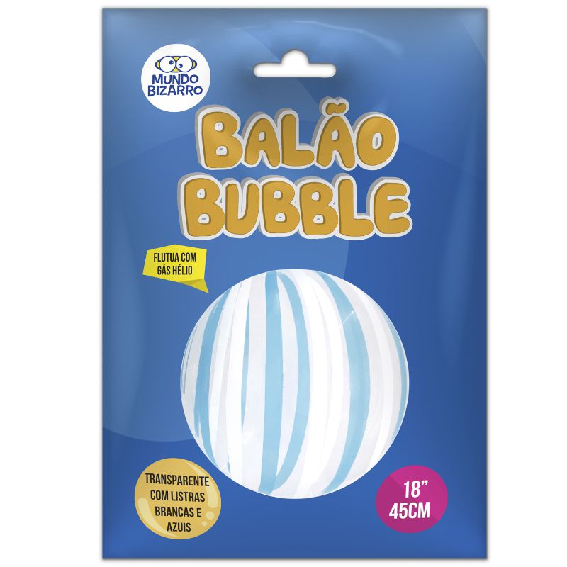 BALÃO BUBBLE TRANSPARENTE COM LISTRAS BRANCAS E AZUIS - 18" 45 CM - COM 01 UNIDADE - MUNDO BIZARRO - LOJA DO ABENÇOADO
