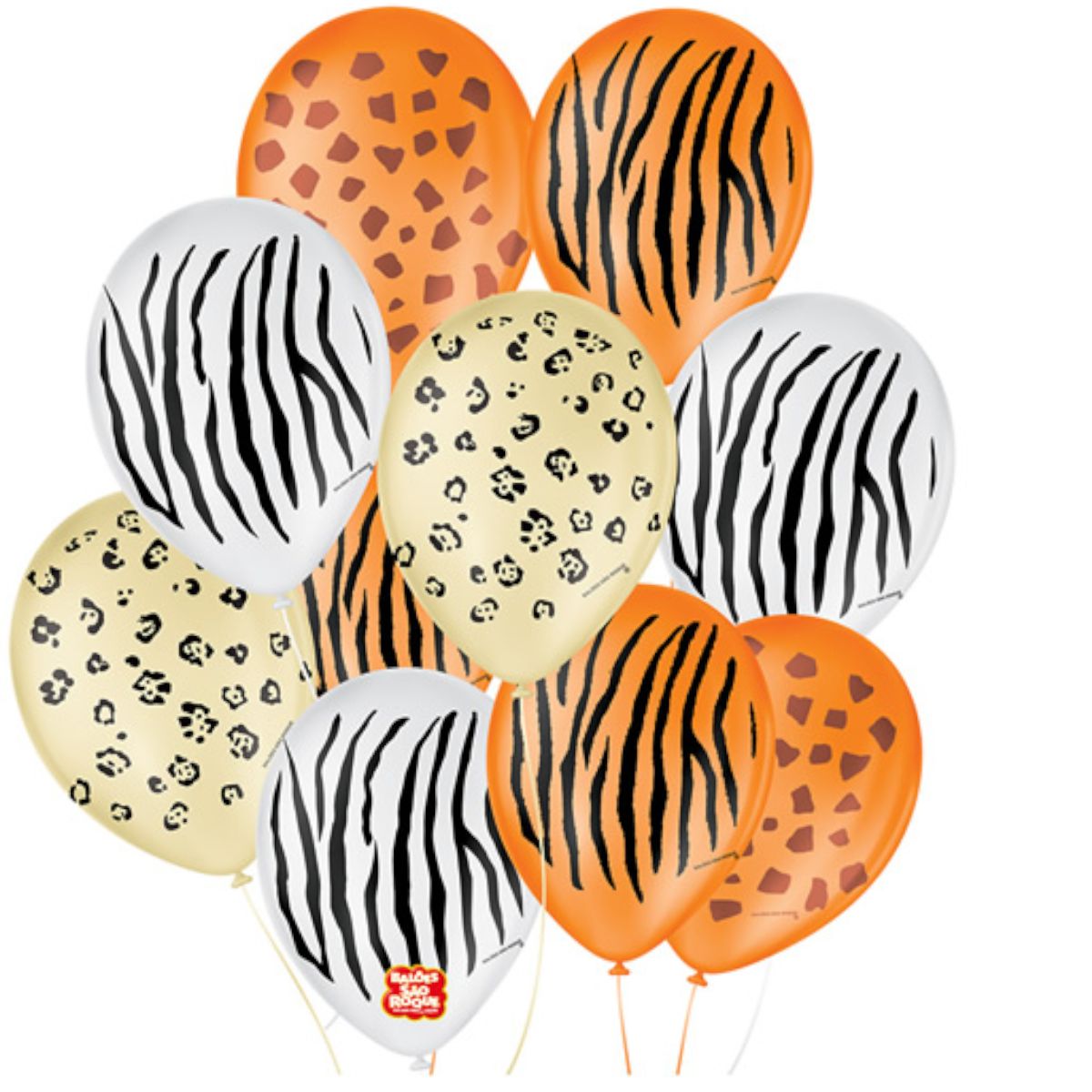 BALÃO DE FESTA DECORADO SAFARI SORTIDO 9'' 23CM - COM 25 UNIDADES - SÃO ROQUE - LOJA DO ABENÇOADO