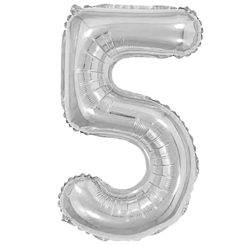 BALÃO DE NÚMERO METALIZADO PRATA - NÚMERO 5 - 40" 1 METRO - REF.: 8335 - MAKE+ - LOJA DO ABENÇOADO