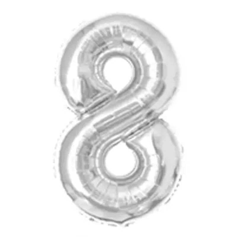 BALÃO DE NÚMERO METALIZADO PRATA - NÚMERO 8 - 16' 40CM - REF.: 8072 - MAKE+ - LOJA DO ABENÇOADO