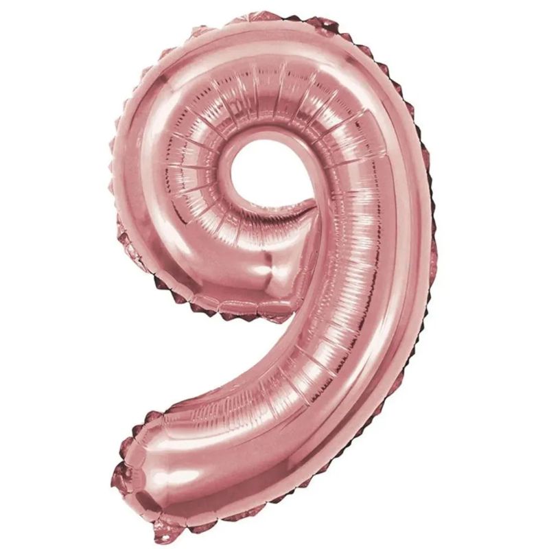 BALÃO DE NÚMERO METALIZADO ROSÊ - NÚMERO 9 - 40" 1 METRO - REF.: 8493 - MAKE+ - LOJA DO ABENÇOADO