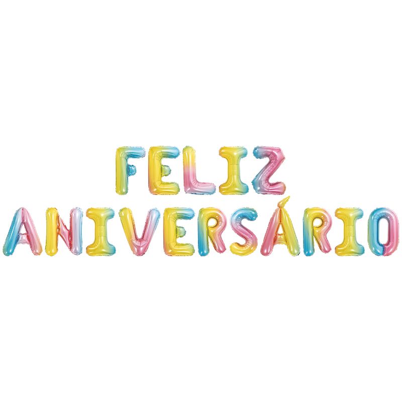 BALÃO METALIZADO - 16" 40CM - ARCO ÍRIS - FELIZ ANIVERSÁRIO - CONTÉM 1 CONJUNTO COM 16 BALÕES - REF.: 8598 - MAKE+ - LOJA DO ABENÇOADO