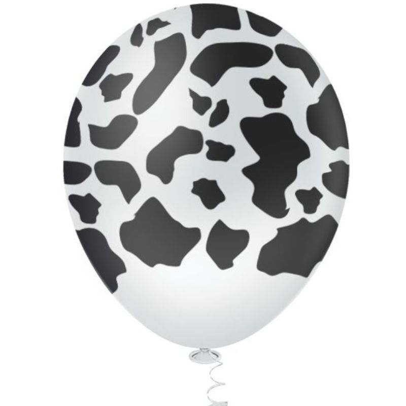 BALÃO VACA MALHADA BRANCO COM PRETO 10" - DE LATEX - COM 25 UNIDADES - PIC PIC - LOJA DO ABENÇOADO
