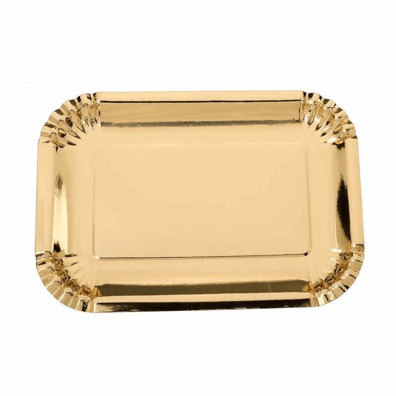 BANDEJA RETANGULAR DE PAPEL DOURADA - 05 UNIDADES - SILVER FESTAS - LOJA DO ABENÇOADO