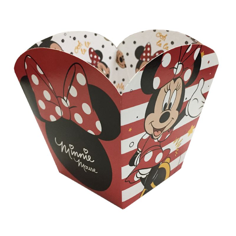 Cachepot em papel cartonado, ilustrado com o tema Minnie Vermelha.