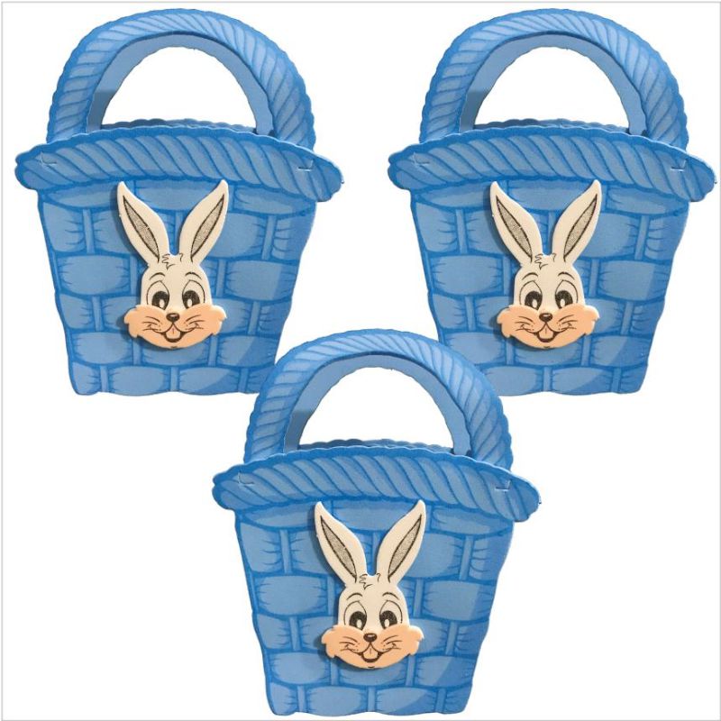 CAIXA PASCOA - CESTINHA AZUL - ENFEITE DE PÁSCOA - 03 UNIDADES - REF.: 203019 - PIFFER - LOJA DO ABENÇOADO