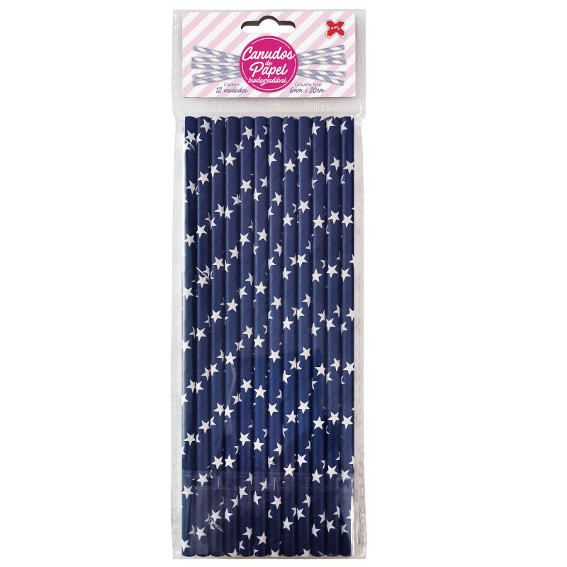 CANUDO DE PAPEL AZUL ESCURO E BRANCO ESTRELINHAS 6MMX200MM - 12 UNIDADES - MAKE MIAS - LOJA DO ABENÇOADO
