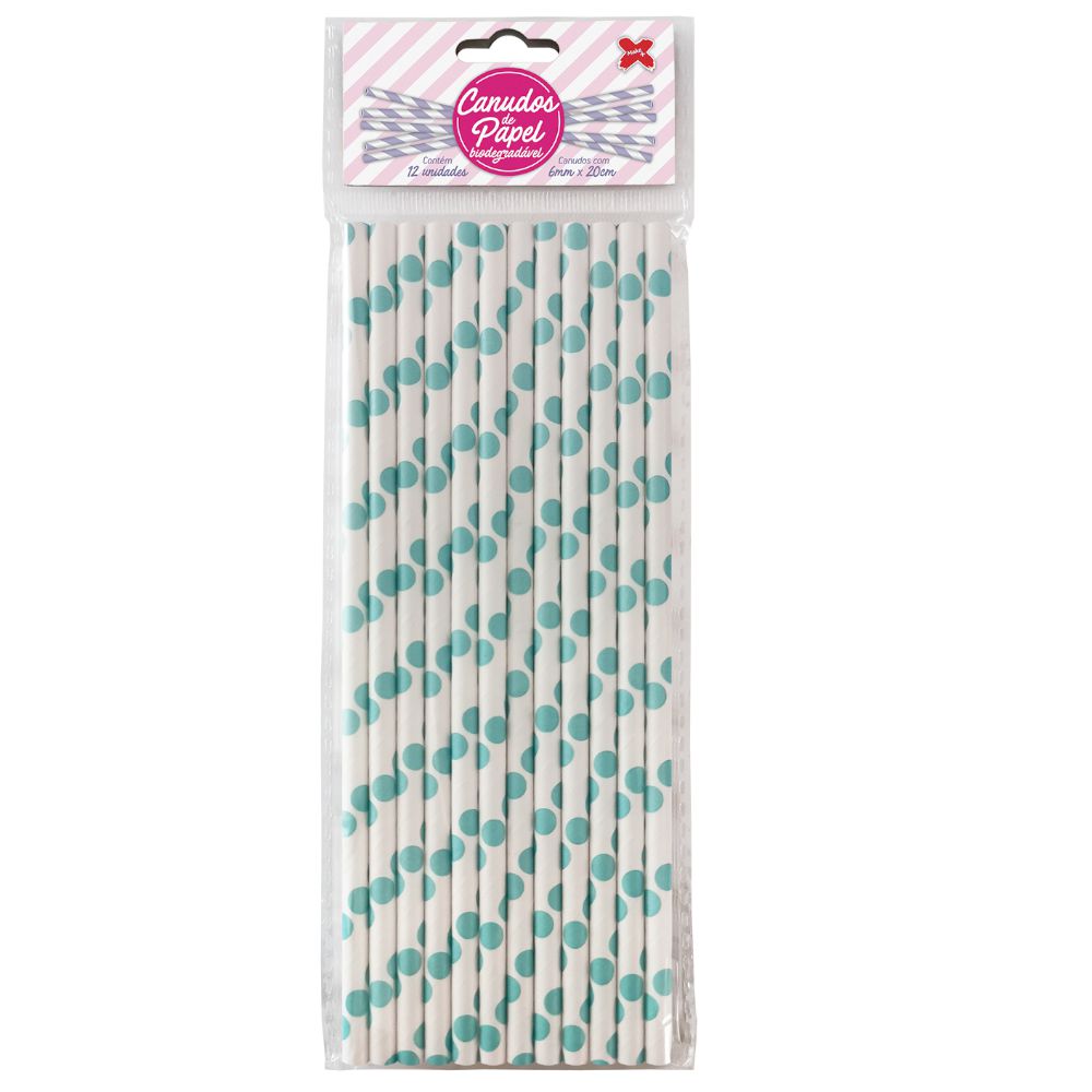 CANUDO DE PAPEL BRANCO COM BOLINHAS AZUL 6MMX20CM - 12 UNIDADES - MAKE+ - LOJA DO ABENÇOADO