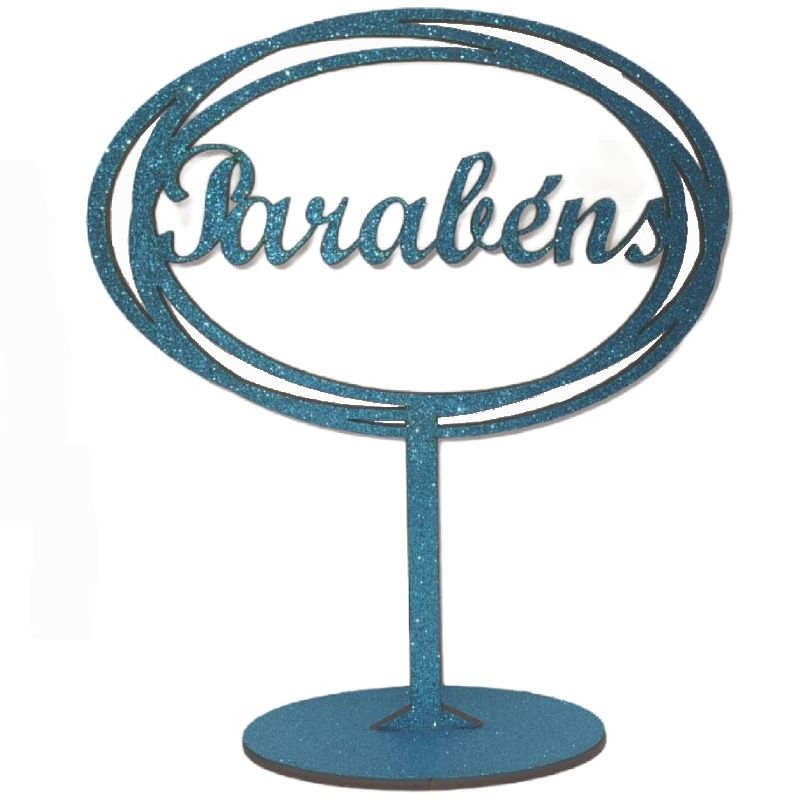 CENTRO DE MESA PARRABENS EM MDF - AZUL/GLITTER - 26CM - MAKE FESTAS - LOJA DO ABENÇOADO