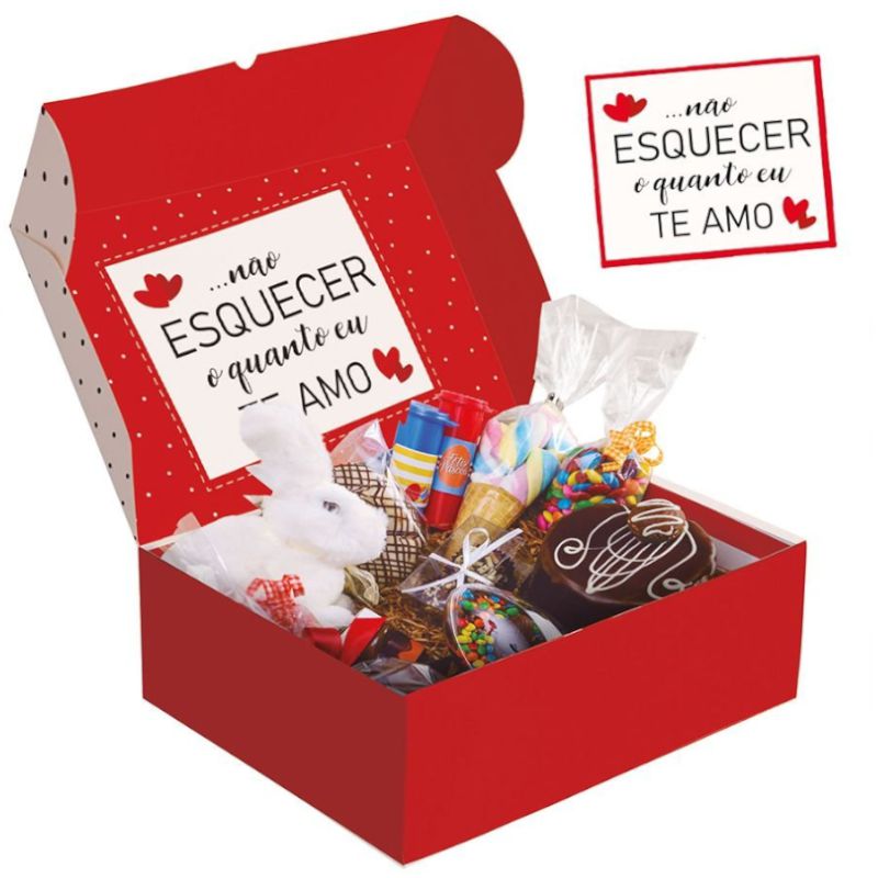 CESTA NA CAIXA ¨ PARA VOCÊ ¨ DIA DOS NAMORADOS VERMELHO - TAM 33X23X10 CM - 01 UNIDADE - CROMUS - LOJA DO ABENÇOADO