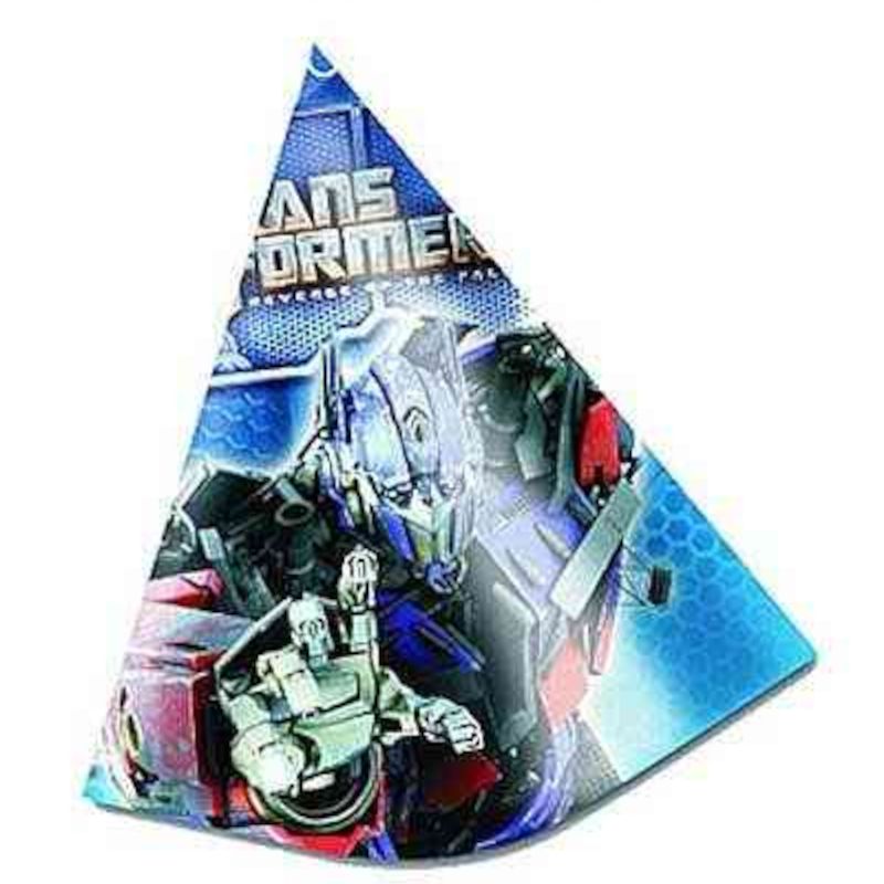 Chapéu de festa tipo cone temático dos transformers. Ilustrado com os personagens do filme.