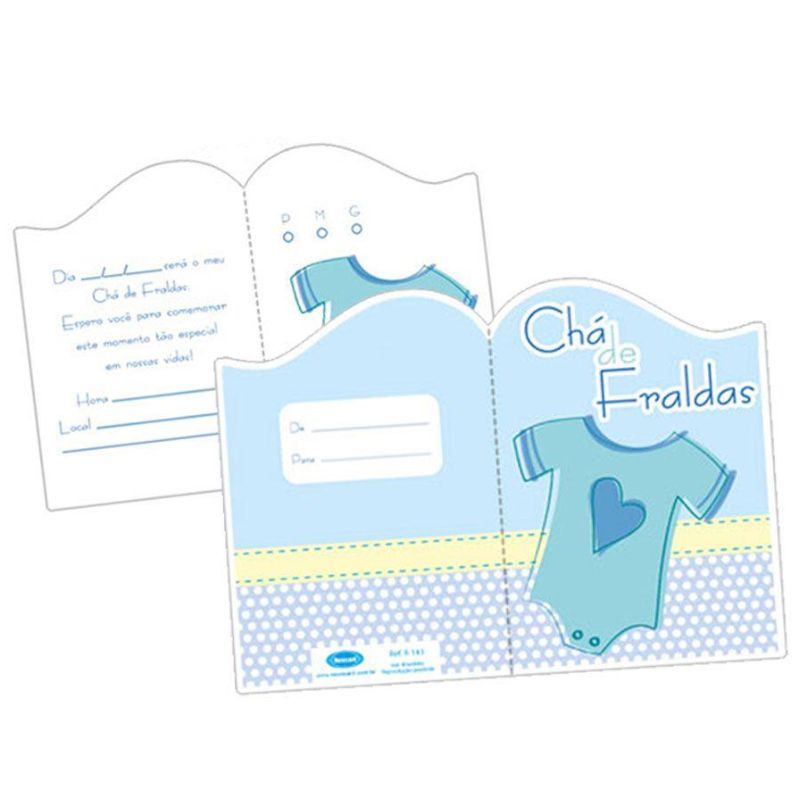 CONVITE CHÁ DE FRALDAS MENINO - 08 UNIDADES - KID ART - LOJA DO ABENÇOADO