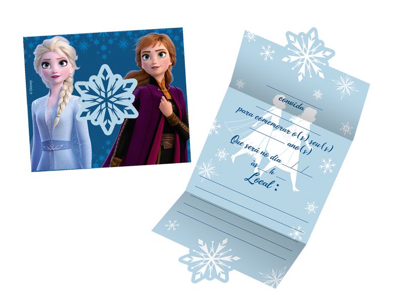 Seus convidados ficarão encantados com este maravilhoso convite, envie com antecedência este lindo Convite Festa Frozen 2 com cores vibrantes e excelente acabamento.