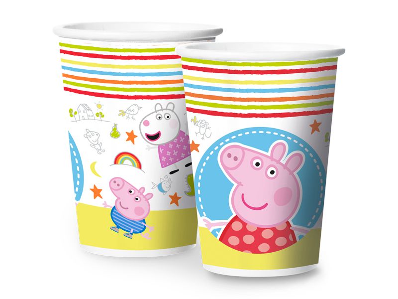 Sirva os convidados de sua festa com os copos descartáveis decorativos com 180ml de capacidade da porquinha mais amada pelos pequenos, a Peppa Pig. Faça sua festa ser pura diversão e gargalhada, assim como nos desenhos da Peppa.