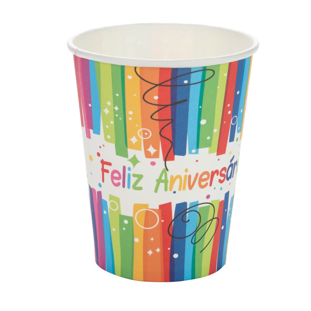 COPO DE PAPEL FELIZ ANIVERSÁRIO 270ML - 10 UNIDADES - SILVER FESTAS - LOJA DO ABENÇOADO