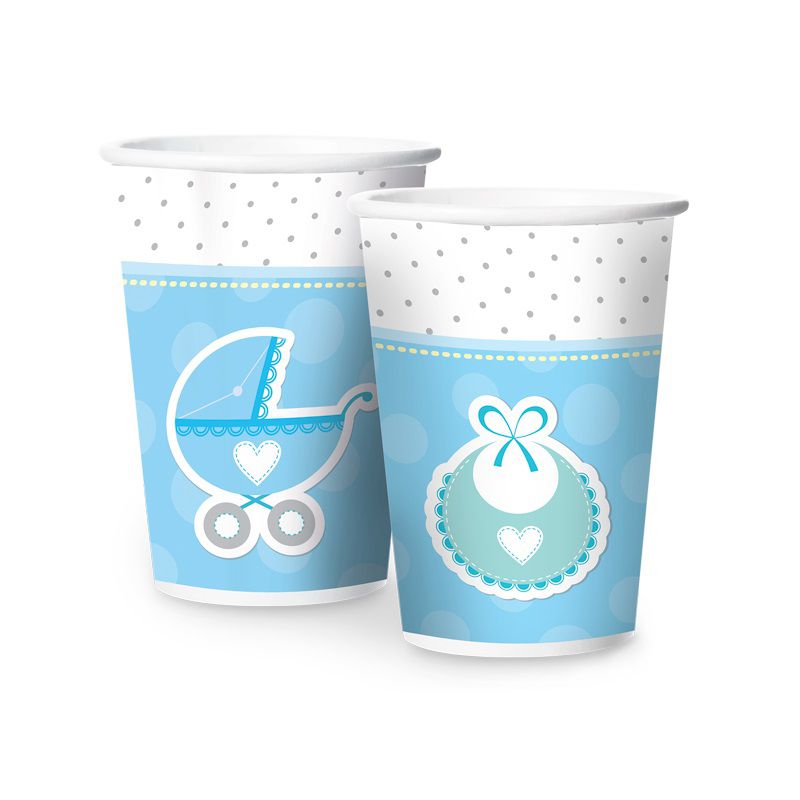COPO DESCARTÁVEL CHÁ DE BEBÊ MENINO - 08 UNIDADES - REGINA FESTAS - LOJA DO ABENÇOADO.
