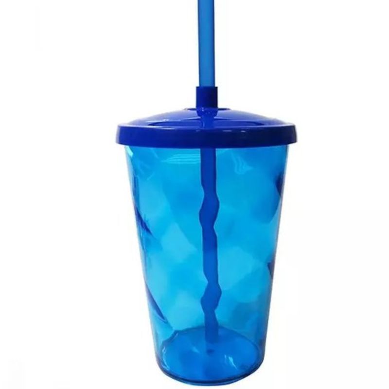 COPO FEST COM TAMPA E CANUDO 750 ML - AZUL TRANSPARENTE - LSC TOY - LOJA DO ABENÇOADO