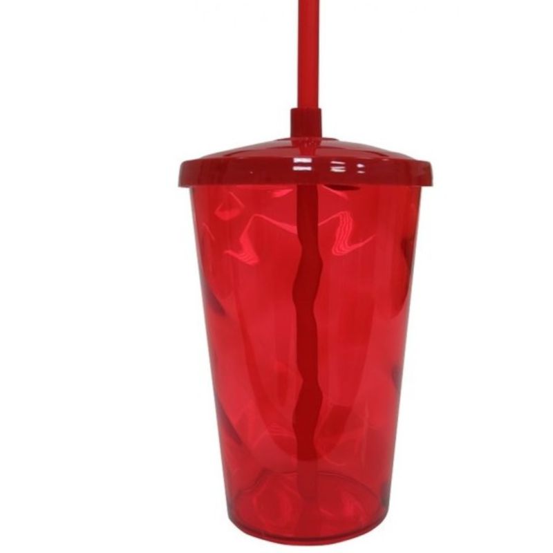 COPO FEST COM TAMPA E CANUDO 750 ML - VERMELHO TRANSPARENTE - LSC TOY - LOJA DO ABENÇOADO