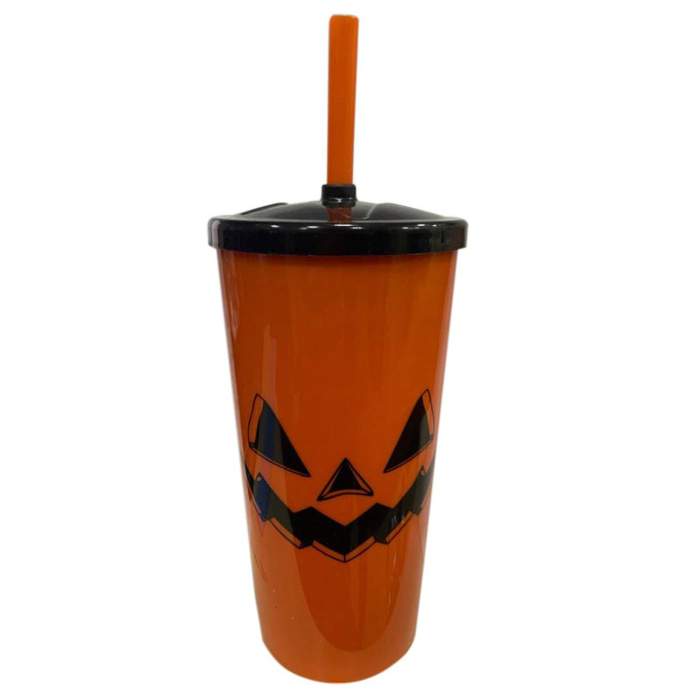 COPO DE PLÁSTICO COM CANUDO ABÓBORA FESTA HALLOWEEN 600ML - LOJA DO ABENÇOADO