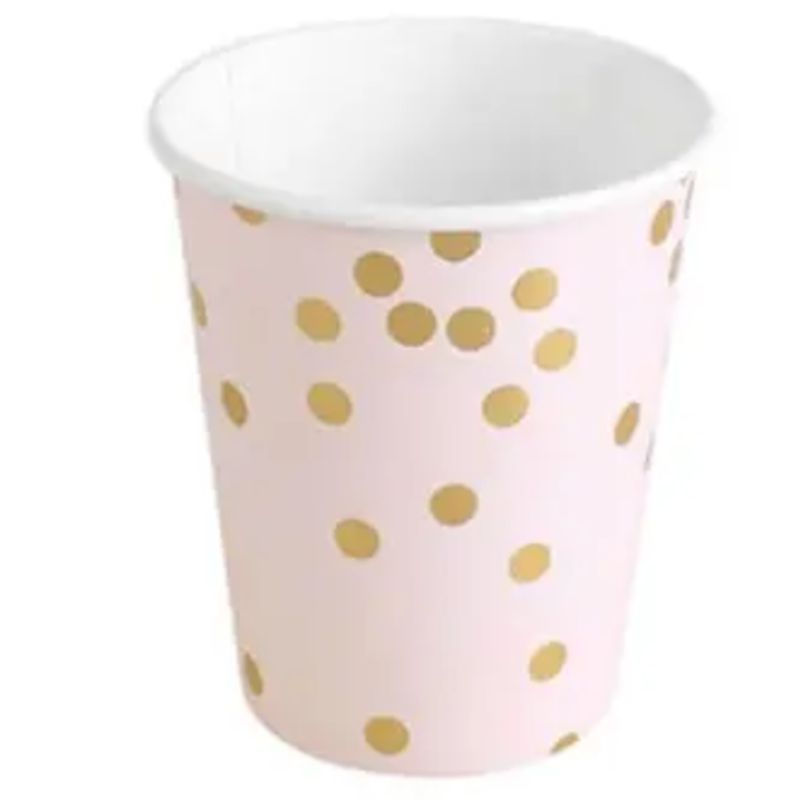 COPO PAPEL LISO CONFETES DOURADOS ROSA BEBÊ COM 10 UNIDADES - 270ML - SILVER FESTAS - LOJA DO ABENÇOADO