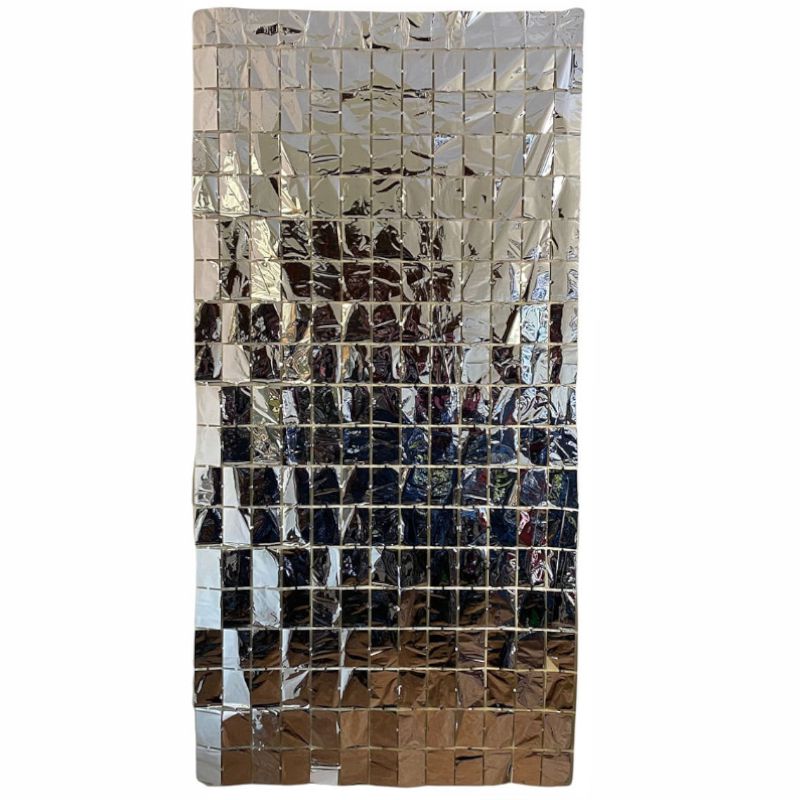 CORTINA METALIZADA PRATA QUADRADOS - 1M X 2M - COM 01 UNIDADE - YDH - LOJA DO ABENÇOADO