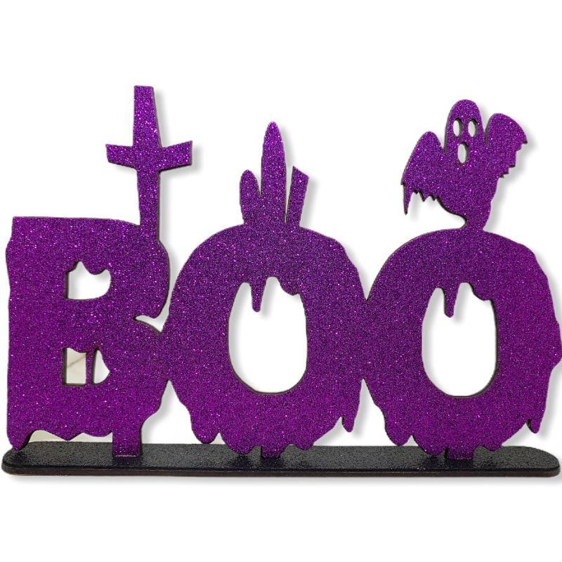 DECORAÇÃO DE MESA HALLOWEEN BOO EM MDF ROXO - HALLOWEEN - 01 UNIDADE - MAKE FESTAS - LOJA DO ABENÇOADO