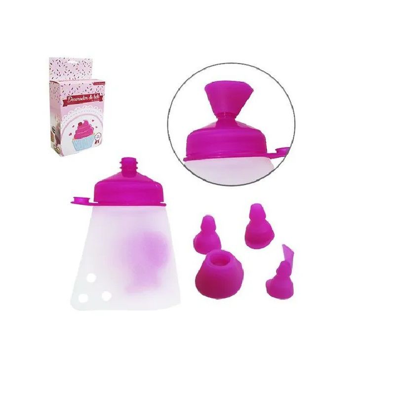 - O Decorador de Bolo Bisnaga com Tampa + 4 Bicos de Silicone Linha Confeiteiro é indispensável na hora decorar bolos e cupcakes. Vem com 4 bicos com diferentes formatos em suas extremidades, possibilitando resultados diversos. Adquira já o seu Decorador de Bolo Bisnaga com Tampa + 4 Bicos de Silicone.