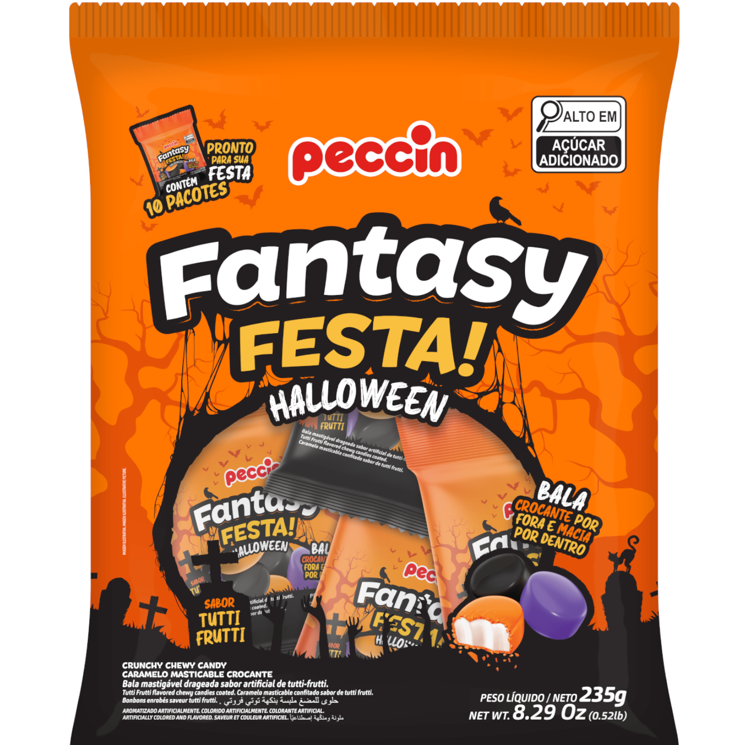 Uma bala saborosa, crocante por fora e macia por dentro, a Fantasy Festa Halloween é perfeita para colorir qualquer momento da sua vida. Em pacotinhos individuais, perfeita para ser distribuída como lembrançinha ou usada em decorações.