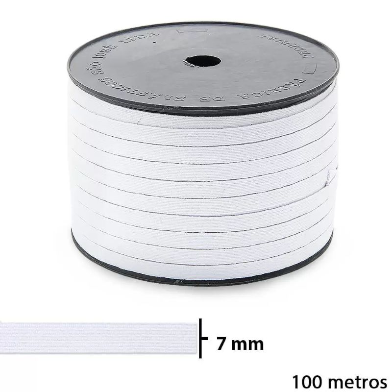 ELÁSTICO CHATO COLOMBE CROCHET 7MM 100M BRANCO - SÃO JOSÉ - LOJA DO ABENÇOADO