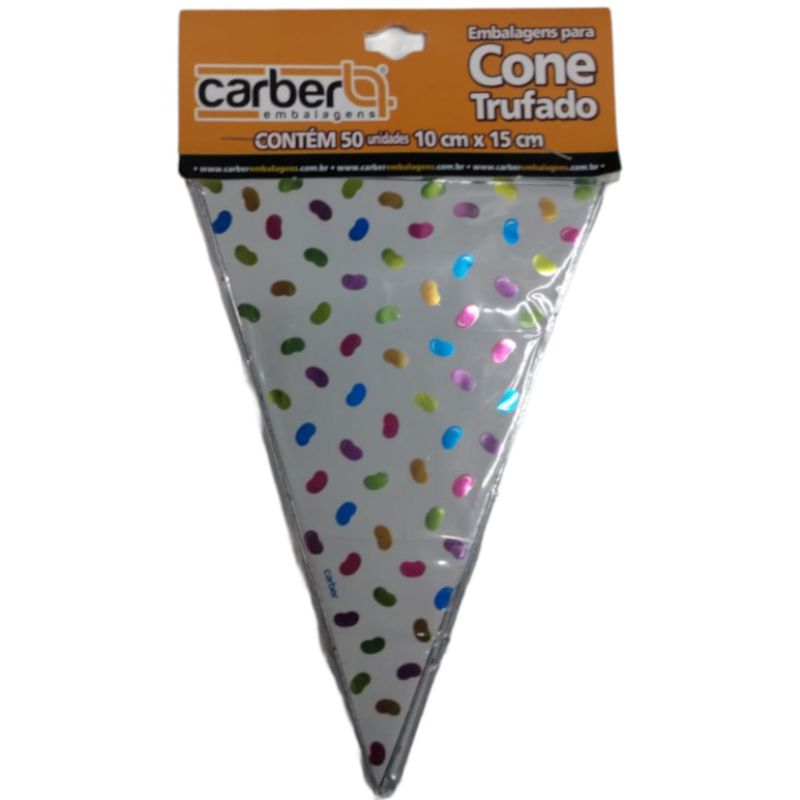 EMBALAGEM PARA CONE TRUFADO CONFEITOS BRANCO 10X15CM - 50 UNIDADES - CARBER - LOJA DO ABENÇOADO