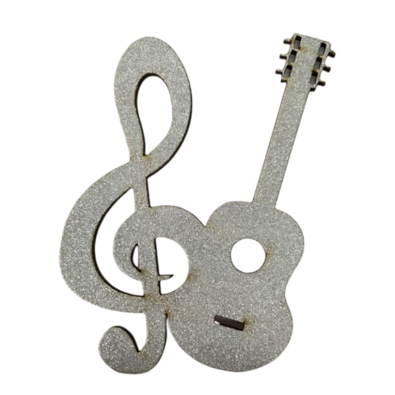 ENFEITE DE MESA VIOLÃO PRATA EM MDF COM GLITTER - CONTÉM 1 UNIDADE - MAKE FESTAS - LOJA DO ABENÇOADO