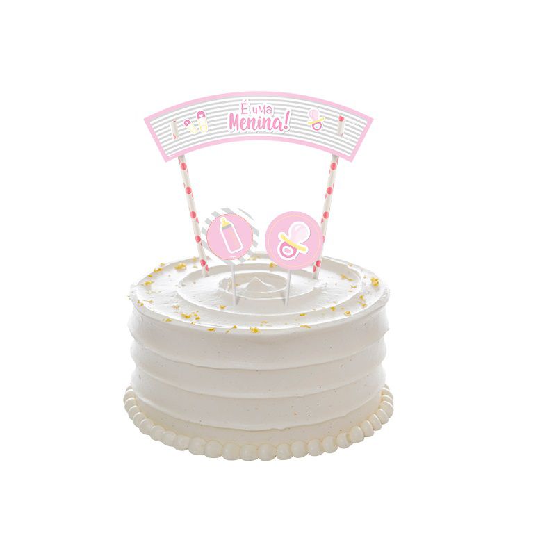 ENFEITE TOPPER PARA BOLO CHÁ DE BEBÊ MENINA - 06 PICKS - 01 TOPPER - 02 VARETAS - REGINA FESTAS - LOJA DO ABENÇOADO