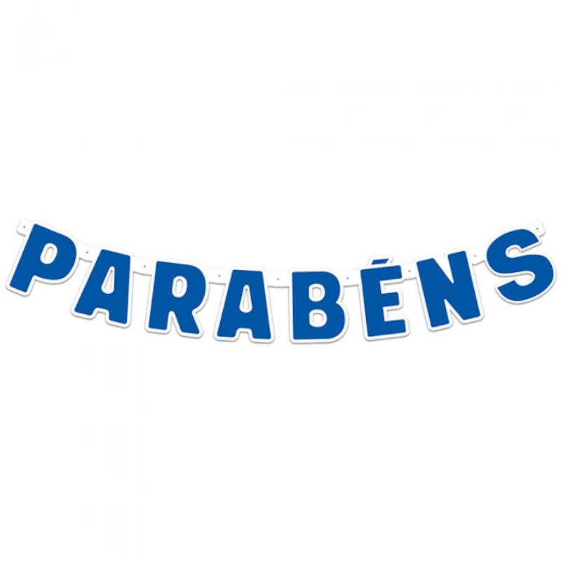 FAIXA DECORATIVA PARABÉNS FESTA COLORS - AZUL ROYAL - CONTÉM 01 UNIDADE - REGINA FESTAS - LOJA DO ABENÇOADO