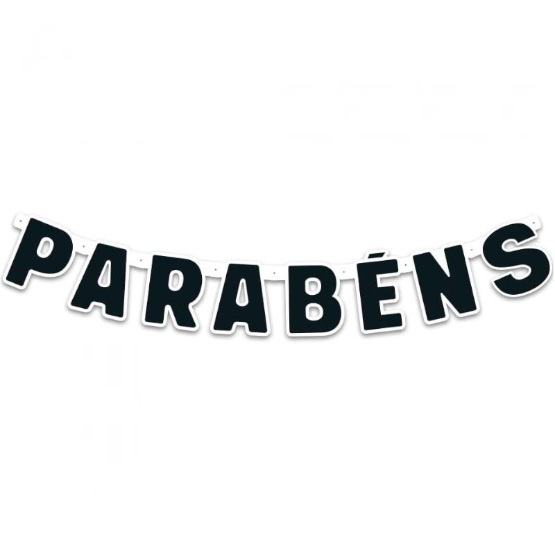 FAIXA DECORATIVA PARABÉNS FESTA COLORS - PRETO - CONTÉM 01 UNIDADE - REGINA FESTAS - LOJA DO ABENÇOADO