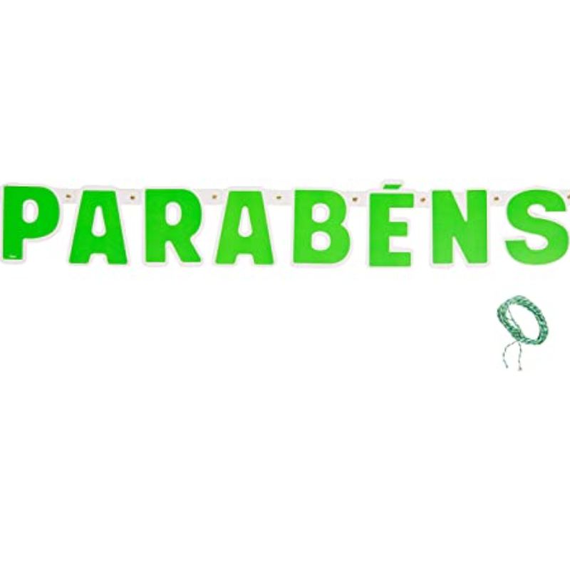 FAIXA DECORATIVA PARABÉNS FESTA COLORS - VERDE NEON - CONTÉM 01 UNIDADE - REGINA FESTAS - LOJA DO ABENÇOADO