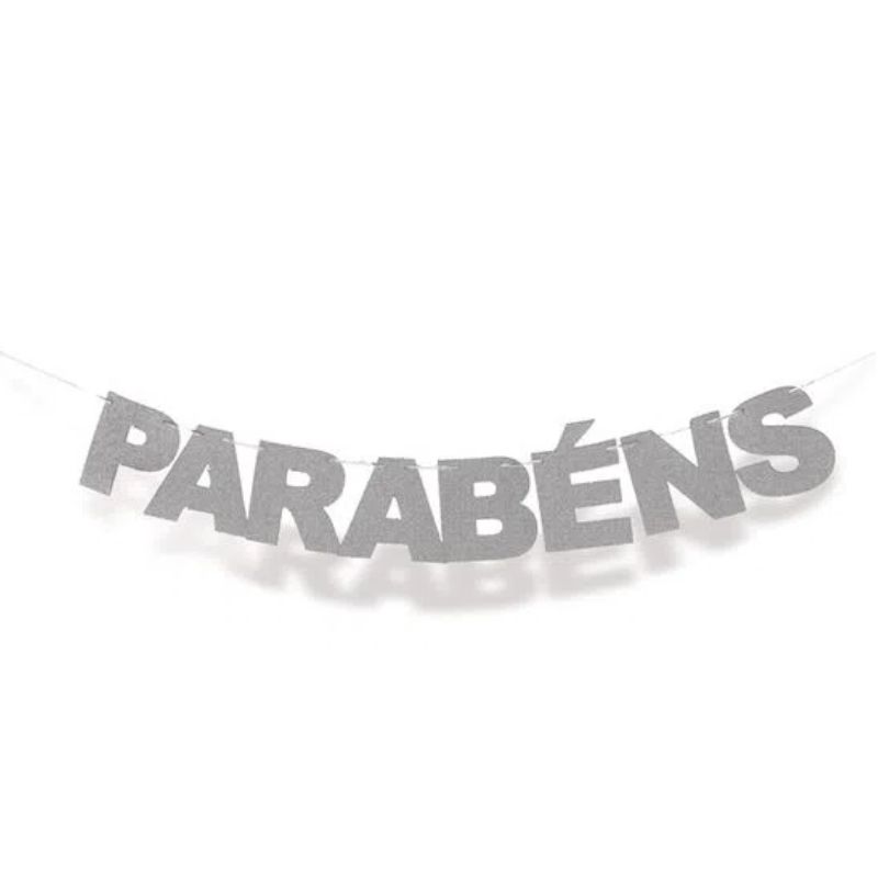 FAIXA DECORATIVA PARABÉNS PRATA EM EVA COM GLITTER - REF 113049 - COM 01 UNIDADE - PIFFER