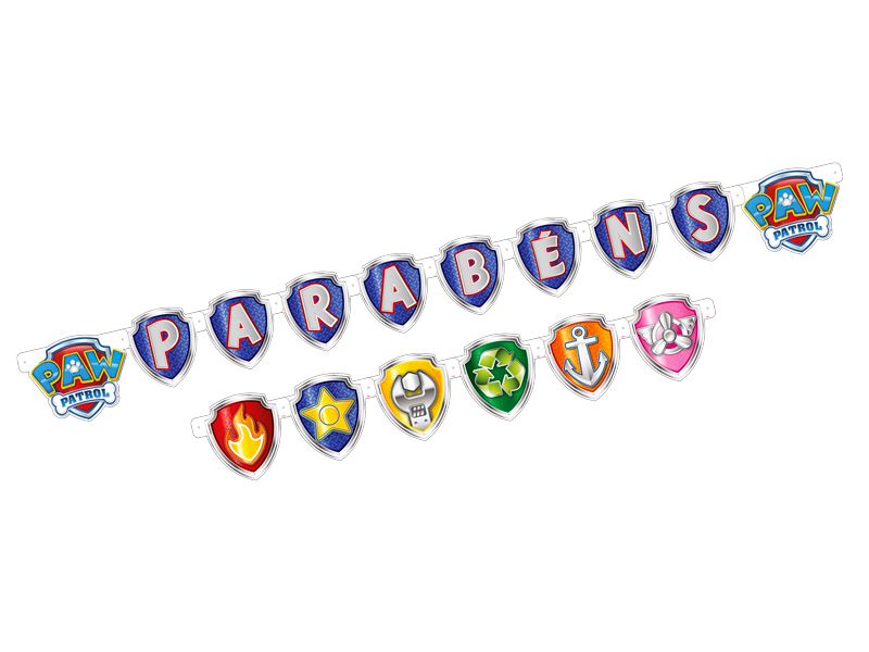 A Faixa Parabéns Festa Patrulha Canina Regina é ideal para pendurar ao fundo da mesa do bolo criando uma linda decoração.